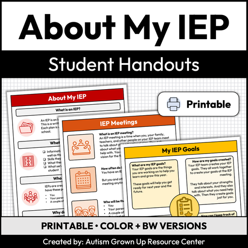 View full detailsYou and your students can use these About My IEP visual handouts to learn more about their IEP, their goals, and ways they can get involved in ...