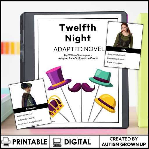 No reviewsOriginal price $20.00 - Original price $20.00Original price$20.00$20.00 - $20.00Current price $20.00| /This adapted novel/play covers Twelfth Night by William Shakespeare and is a helpful starting place for getting grade-level texts into your specia...