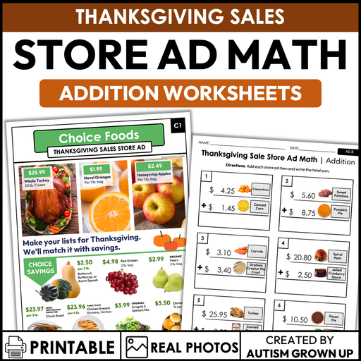 Thanksgiving Sale Store Ad Worksheets | Addition