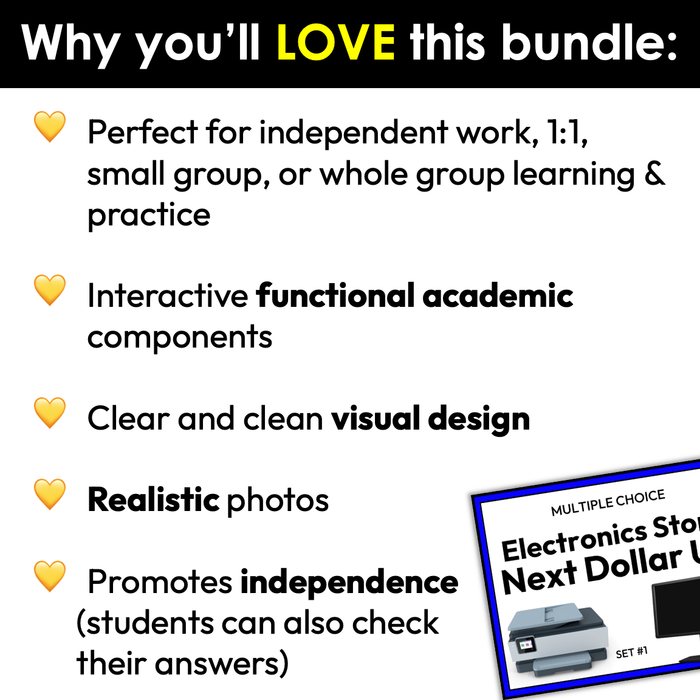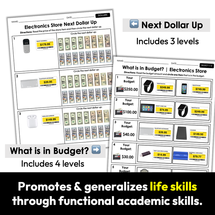 Fill in your life skills lessons with these electronics store activities! They help students practice functional reading and math skills with a focus on the electronics store.