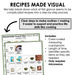 Visual Recipe: Visuals of step-by-step directions to create the recipe - including visuals of measuring cups & spoons. We provide a walkthrough of the recipe that makes it easier to preview and refer to during cooking.