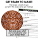 Ingredients + Tools: One page visual of ingredients and tools needed to complete the recipe. Also included: length of time to make, servings, and amounts needed for ingredients.