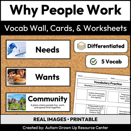 Why People Work | Career Exploration Vocab Wall, Cards, & Worksheets
