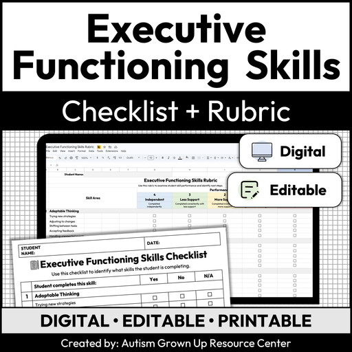 Executive Functioning Skills Checklist + Rubric | Digital + Editable