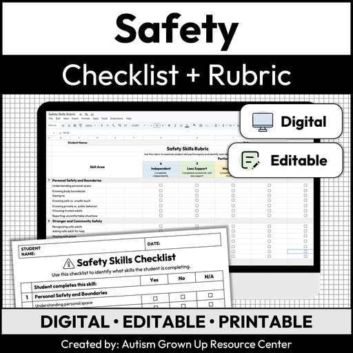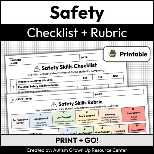No reviewsOriginal price $4.00 - Original price $4.00Original price$4.00$4.00 - $4.00Current price $4.00| /Use this digital and editable Safety Skills Checklist + Rubric to...