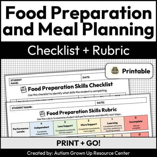 Food Preparation and Meal Planning Skills Checklist + Rubric | Printable