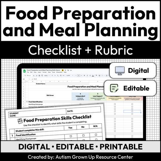 Food Preparation and Meal Planning Skills Checklist + Rubric | Digital + Editable
