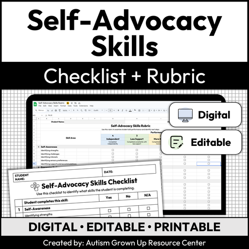 Self-Advocacy Skills Checklist + Rubric | Digital + Editable