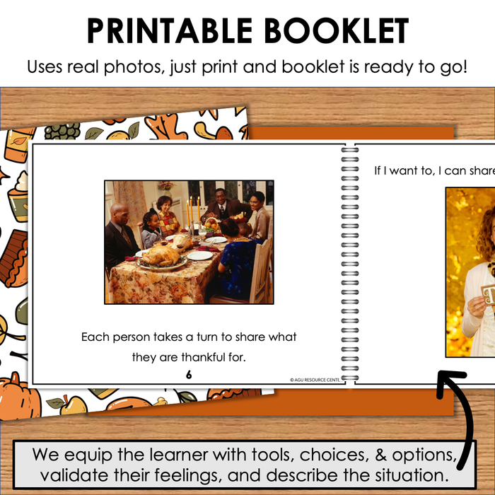 This social story supports learner understanding of a Thanksgiving tradition like sharing what you’re thankful for. They’ll be prepared and may want to share what they’re thankful for!