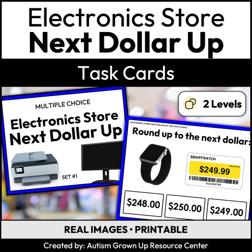 Electronics Store Next Dollar Up Task Cards for Special Education