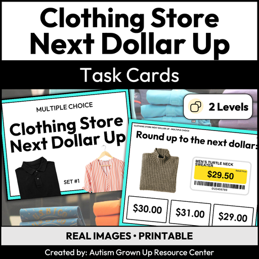 Clothing Store Next Dollar Up Task Cards for Special Education