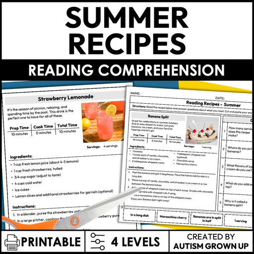 No reviewsOriginal price $4.50 - Original price $4.50Original price$4.50$4.50 - $4.50Current price $4.50| /This resource focuses on reading recipes for summer seasonal treats, snacks, and meals. Student...