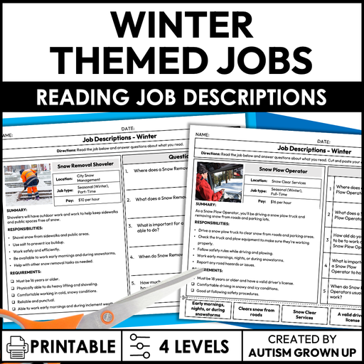 No reviewsOriginal price $4.50 - Original price $4.50Original price$4.50$4.50 - $4.50Current price $4.50| /Looking for a life skills activity related to the Winter season? This resource focuses on reading...