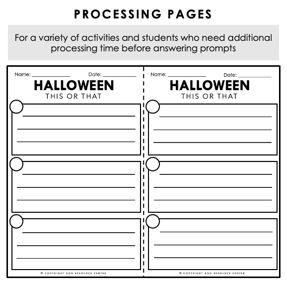 - Your choice of processing pages + reflection pages for students who need some support with their answers, thinking through their answers, or if you want to additional prompts (like, guess what your teacher would answer here!)