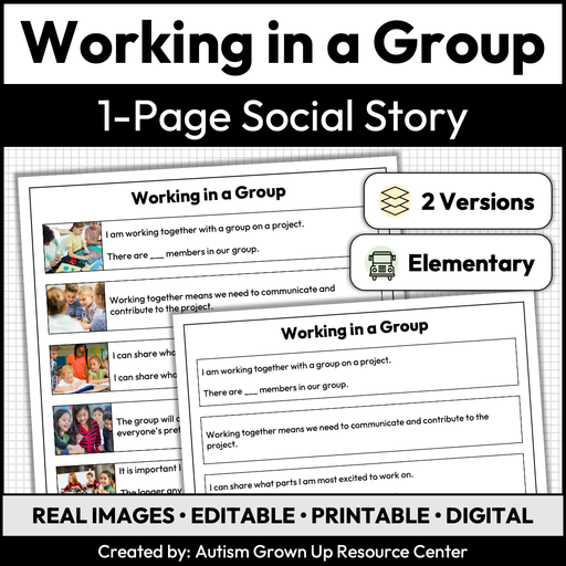 No reviewsOriginal price $2.00 - Original price $2.00Original price$2.00$2.00 - $2.00Current price $2.00| /This one-page social story walks the student through what to expect for grou...