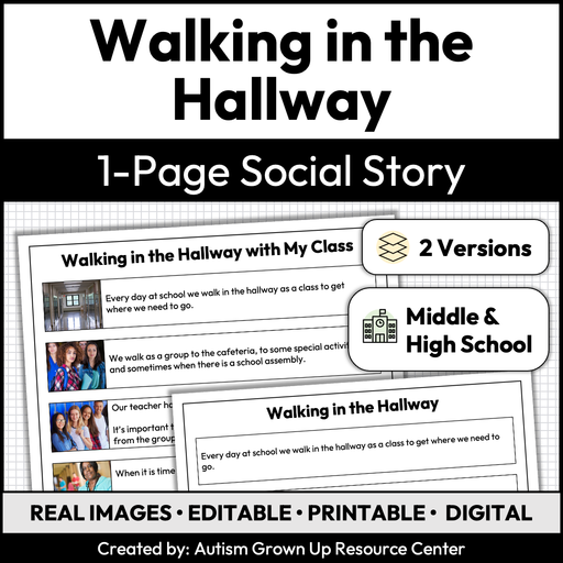 Walking in the Hallway | 1-Page Social Story | Middle and High School