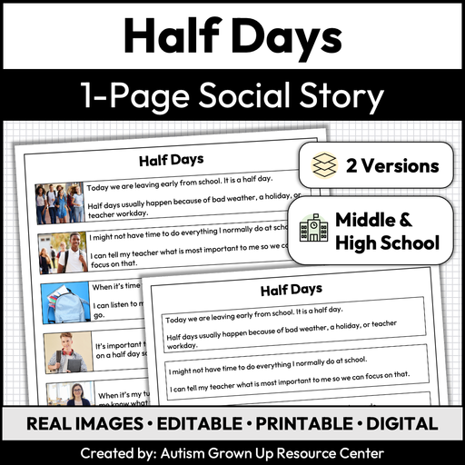 No reviewsOriginal price $2.00 - Original price $2.00Original price$2.00$2.00 - $2.00Current price $2.00| /This one-page social story walks the student through what to exp...