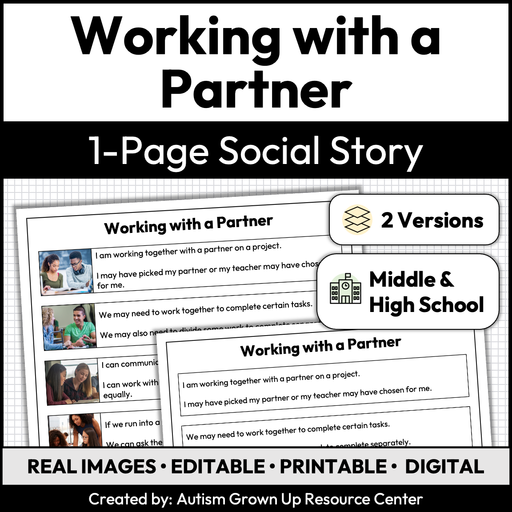 Working with a Partner | 1-Page Social Story | Middle and High School