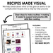 Visual Recipe: Visuals of step-by-step directions to create the recipe - including visuals of measuring cups & spoons. We provide a walkthrough of the recipe that makes it easier to preview and refer to during cooking.