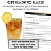 Ingredients + Tools: One page visual of ingredients and tools needed to complete the recipe. Also included: length of time to make, servings, and amounts needed for ingredients.