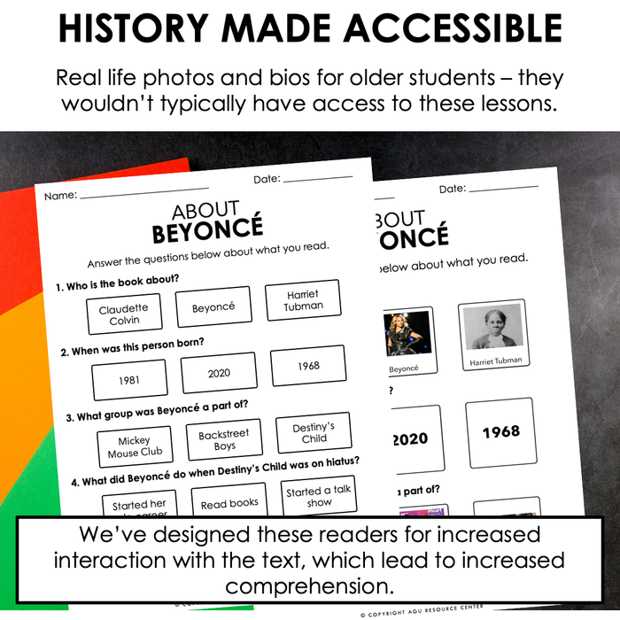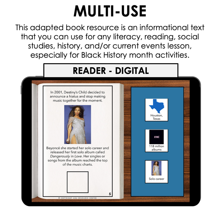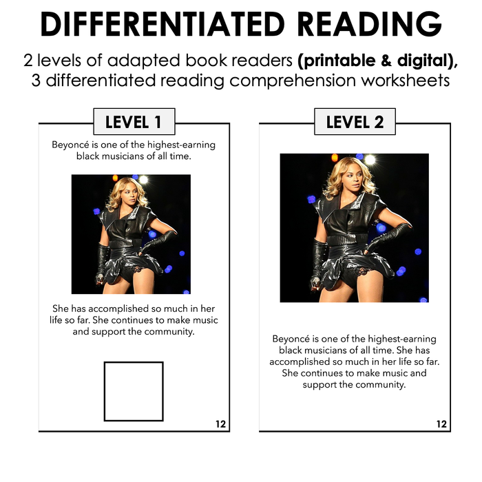 This Beyoncé adapted book resource is an informational text that you can use for any literacy, reading, social studies, history, and/or current events lesson. For special education, ELL/ESL/EFL, and classrooms that could use a more accessible text for Black History Month, Women's History Month, and throughout the year.