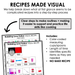 Visual Recipe: Visuals of step-by-step directions to create the recipe - including visuals of measuring cups & spoons. We provide a walkthrough of the recipe that makes it easier to preview and refer to during cooking.