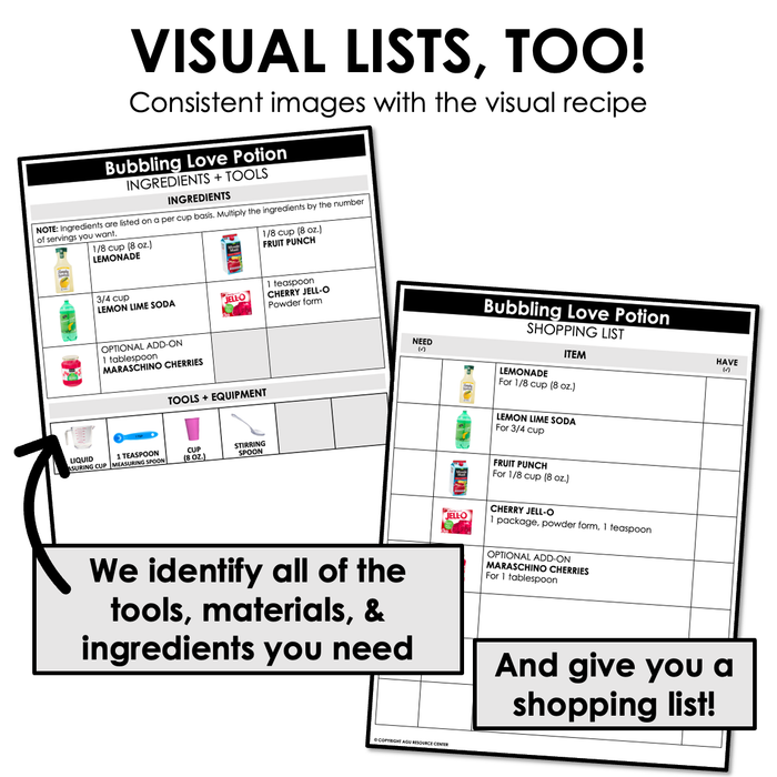 This visual recipe is for making Bubbling Love Potion! The recipe is broken into simple steps and is no-bake.