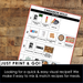 Ingredients + Tools: One page visual of ingredients and tools needed to complete the recipe. Also included: length of time to make, servings, and amounts needed for ingredients.