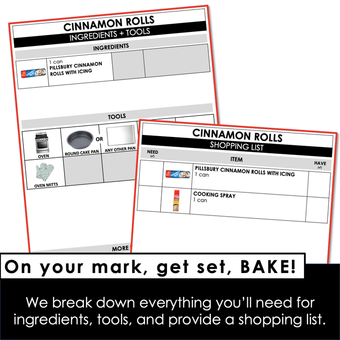 This visual recipe is for cinnamon rolls - the Pillsbury/instant version. Visual recipes make it easy to teach and practice cooking skills in the classroom and at home. Plus, this cooking activity can be a good one to incorporate into holiday fun!