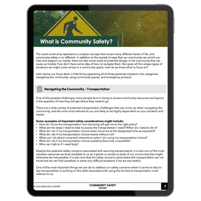 Welcome to the Community Safety Toolkit, a guide for Autistic adults who want to learn about or work on skills related to staying safe while navigating their local community. Community safety is a crucial component of community living and therefore independent living. It is also a complex topic that requires some practice and know-how.