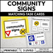 These life skills task cards focus on community signs. Includes real photos and data collection sheets. This particular set targets matching community signs. This resource provides an easy way to teach and review common community signs vocabulary that you can use across multiple settings, activities, and ages with age-respectful photos.