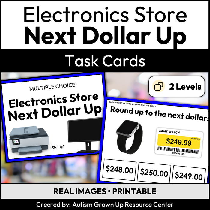 Electronics Store Next Dollar Up Task Cards for Special Education