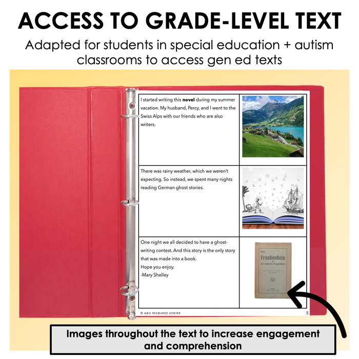 This adapted novel covers Frankenstein, and is a helpful starting place for getting grade-level texts into your special education and autism classroom.