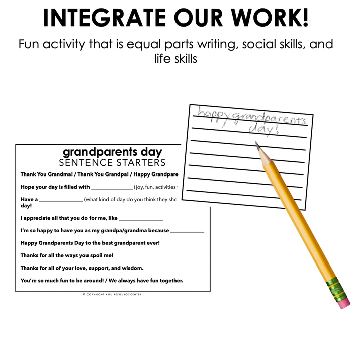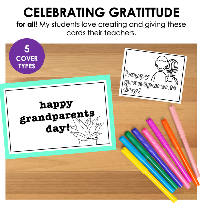 This Grandparents Day greeting card resource is a fun-filled – yet also life skills + academic – activity for your special education classroom. It gives you and your students a chance to create cards of their own and practice a life skill like writing cards and notes to others.