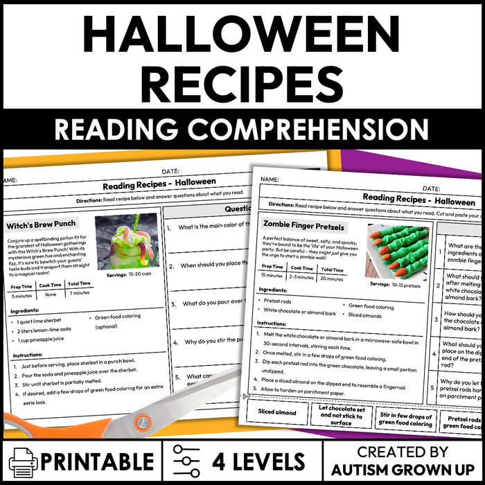 Halloween Recipes | Recipe Reading Comprehension | Special Education