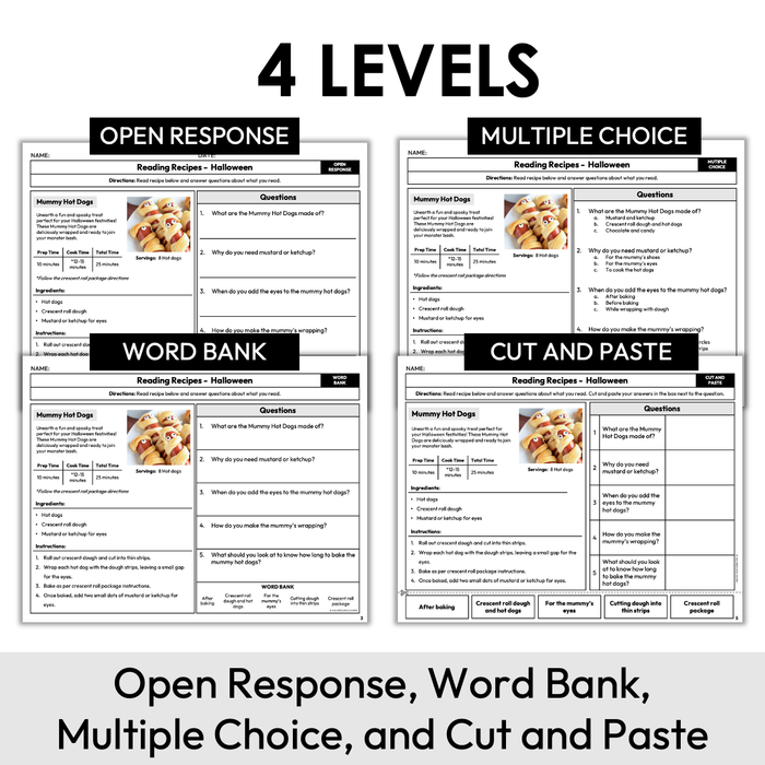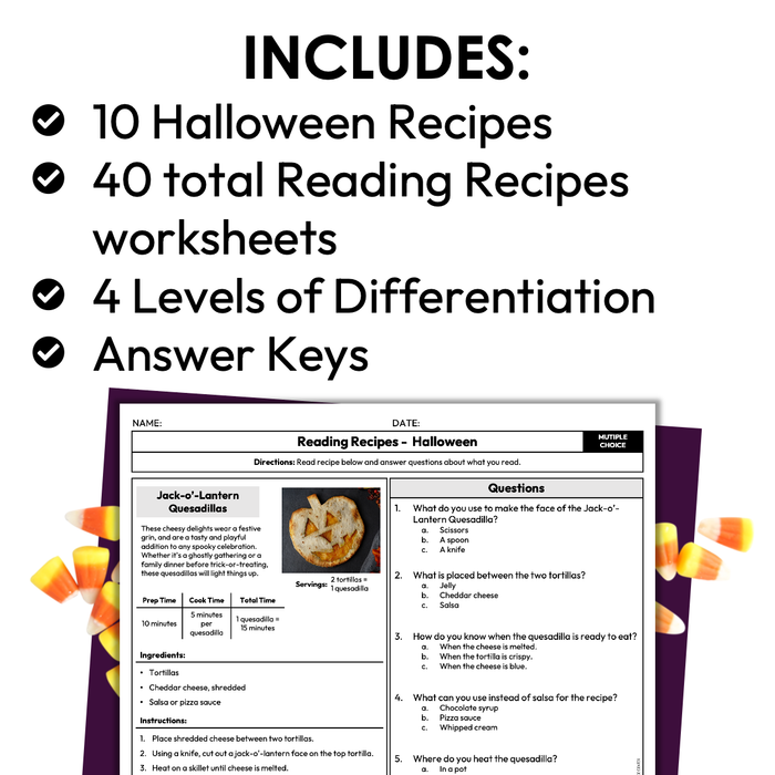 • 40 total Halloween Recipe Comprehension Worksheets