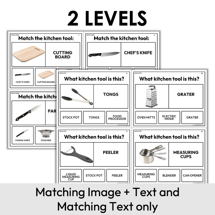 Kitchen Tools and Equipment | Matching Task Cards | Special Education