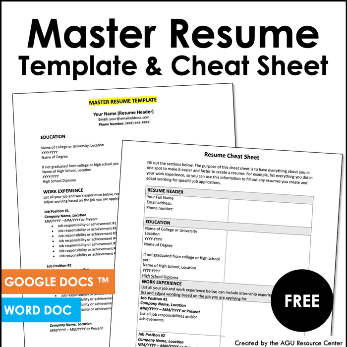Master Resume Template | Editable in Google Docs and Word Doc