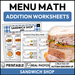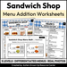 Menu Math Worksheets | Sandwich Shop | Addition