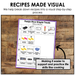 Visual Recipe: Visuals of step-by-step directions to create the recipe - including visuals of measuring cups & spoons. We provide a walkthrough of the recipe that makes it easier to preview and refer to during cooking.
