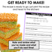 Ingredients + Tools: One page visual of ingredients and tools needed to complete the recipe. Also included: length of time to make, servings, and amounts needed for ingredients.