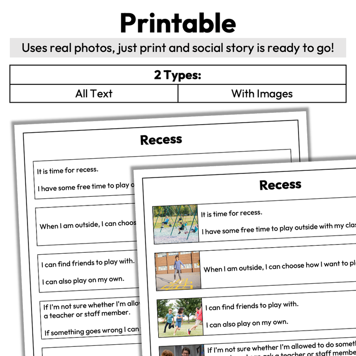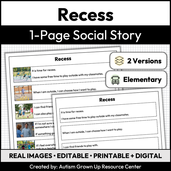 Recess | 1-Page Social Story | Elementary