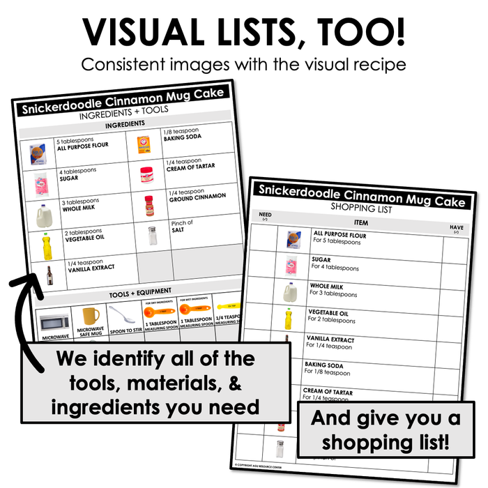 Visual Recipe: Visuals of step-by-step directions to create the recipe - including visuals of measuring cups & spoons. We provide a walkthrough of the recipe that makes it easier to preview and refer to during cooking.