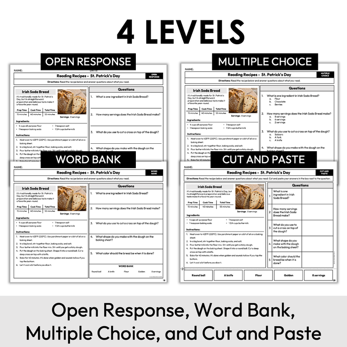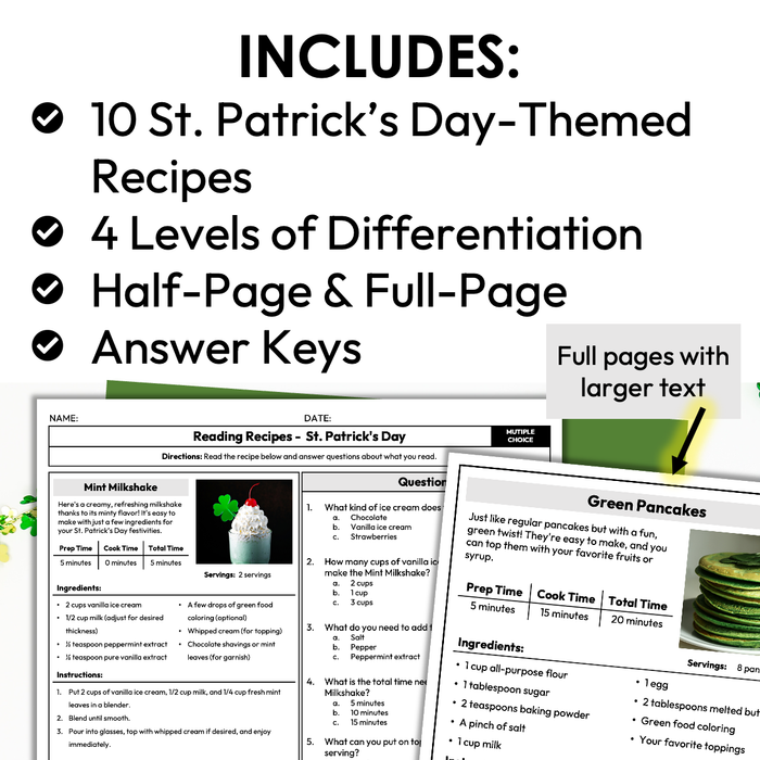 • 40 total St. Patrick's Day Recipe Comprehension Worksheets