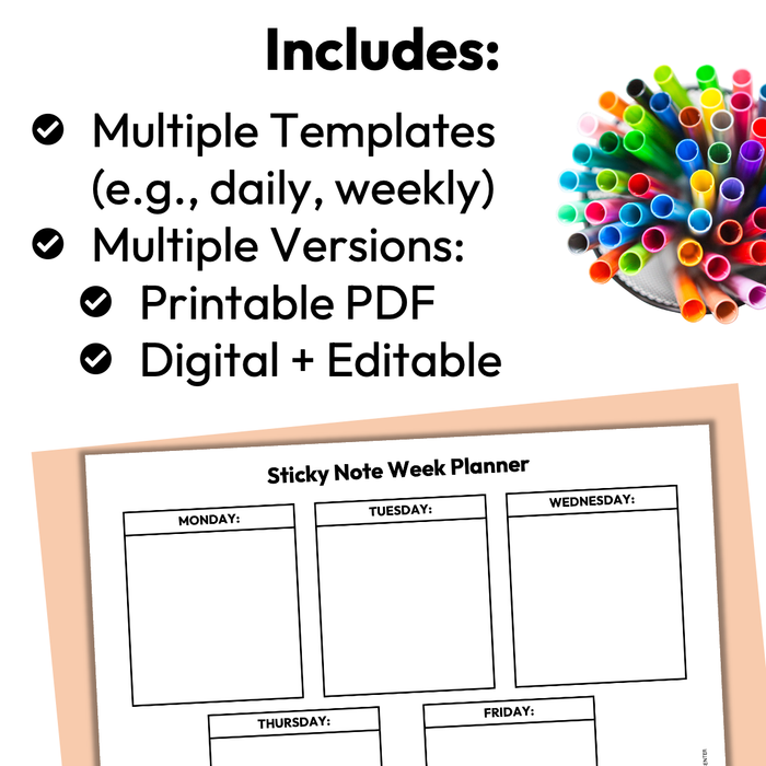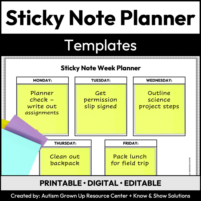 This planner template is a visual support for building and practicing executive functioning skills. It provides a visual breakdown of tasks, assignments, to-do items, and more, as well as, a way to show how we can adapt our schedule as needed.