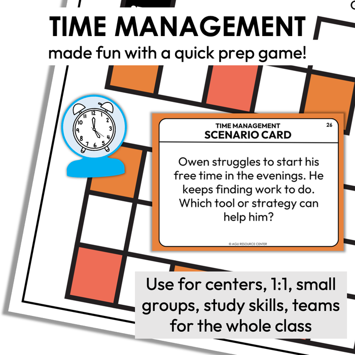 Objective: Students will learn about and practice time management as an executive functioning skill through a hands-on game.